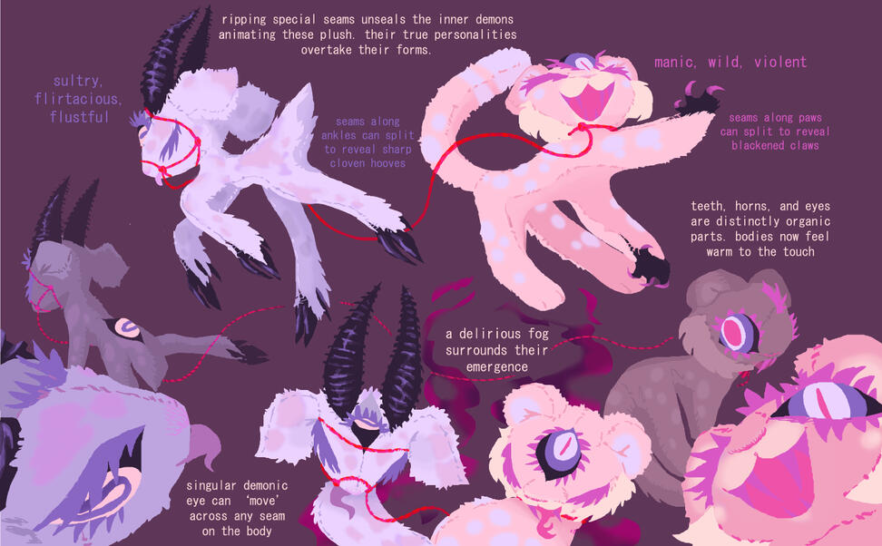 a set of images featuring your OC + a bevvy of ferals.These commissions come with inherent background + atmosphere in the price!CUSTOMIZABLE! Whimsical, fun, gorey, playful, frightening, upsetting, dreamlike, beautiful? Let's make a unique scene together!
